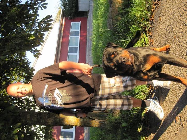 Big, tough guys in Rottweil. Actually, the man was a sweetie pie. NOt sure about the dog.