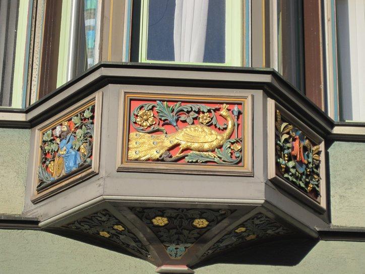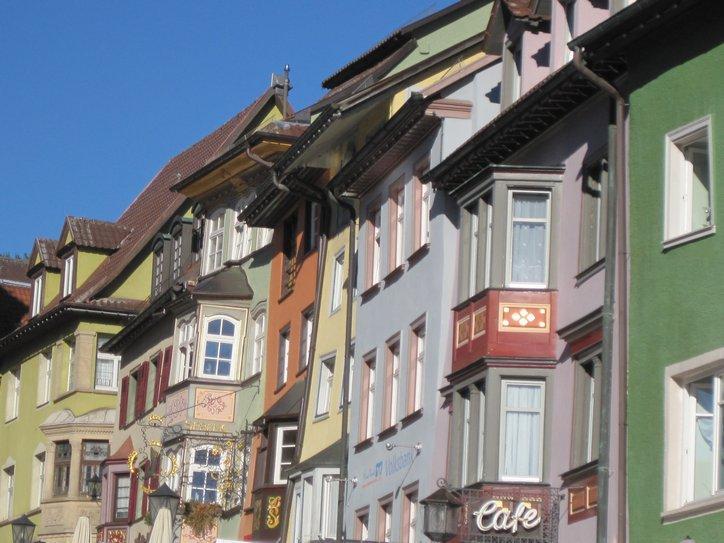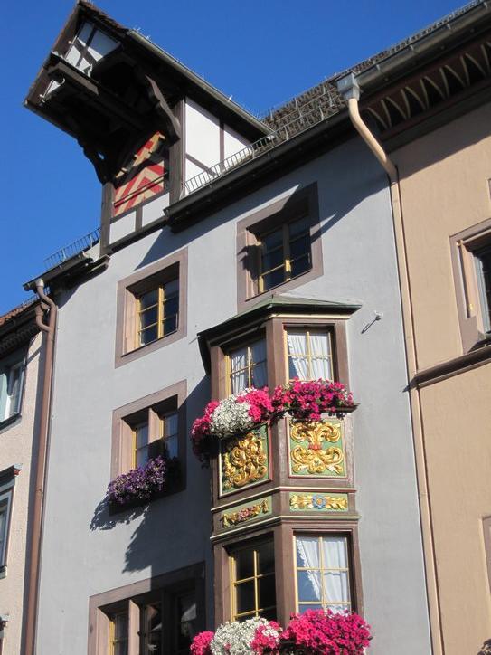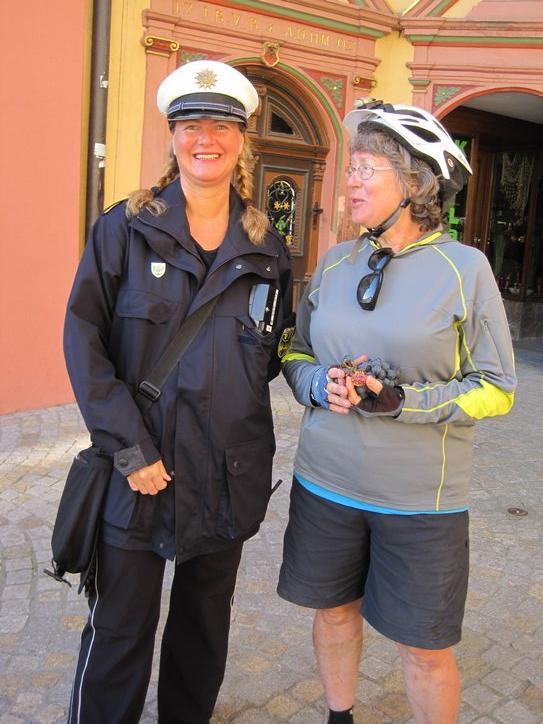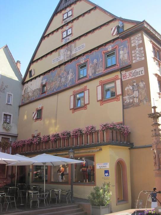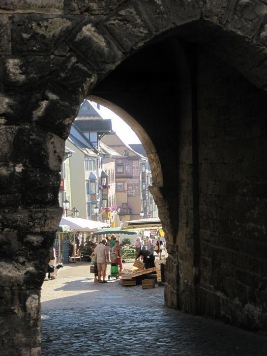 We cruised over to the old town, about 1 km away, and had the nicest surprise. The old town, first of all, seems much more extensive than what we have seen in other cities. So instead of just a really cute markt platz, there were lots of interesting streets. However the street by the rathaus was a stunner. The buildings were decorated with painting and with crests, in a way we have not seen before. Plus they were crowded and huddled in a way that Walt Disney could never improve on, for a fairy tale movie of any budget. Finally, being Saturday, there was a market underway in the street!