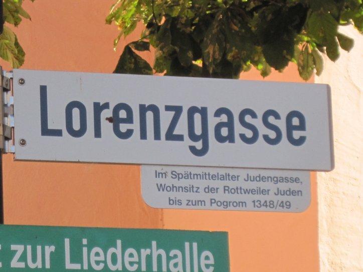 This was by a lane, no different from others. The explusion of the jews corresponded with the Plague. (We later saw the same date given for expulsions in Tubingen, at a similar alley there.)