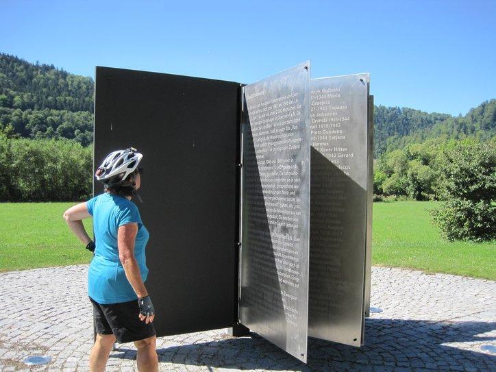 On Oberndorf - a war memorial. This was completed in 2007, showing people are still thinking about it. This one recalls 300+ people that were killed in a labour camp near here.Some memorials just remember the dead soldiers, but more than half carry anti-fascist messages.