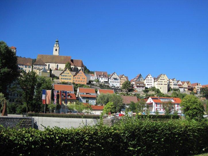 We proceeded from page to page in our Neckar radweg map, following a path that normally was either in forest or crossing small clearings or fields. Interesting villages are strewn along the way, but we did not make any special detours to check them out. The path, however, did go straight through Rottenberg, a place with many interesting buildings and scenes.