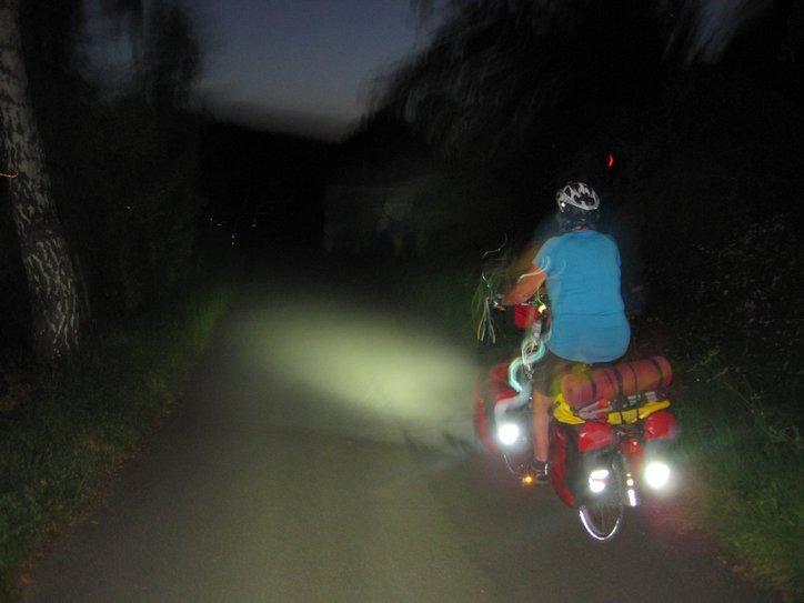 Well, this bit is not exactly being written from a park bench, but it's close. We have set up our tent on a piece of concrete by a lock in the river, close to Stuttgart. We have been riding in the dark with our (very good) bike headlights, but decided that looking for the camping in the city in the dark might not be a winning proposition.