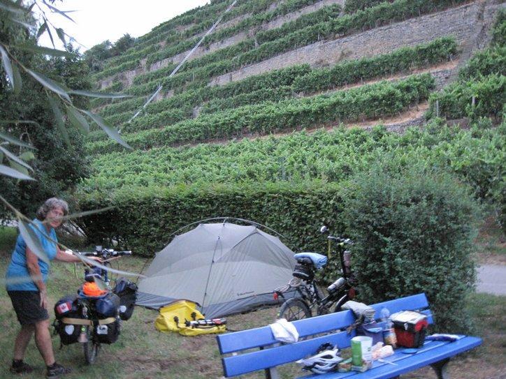 In the guestbook (message #412), Hiel Lindquist alerted us to a blog from last year, Camping Germany’s Radwegs – 2011 by Graeme Dawe. Graeme passed through almost the same towns that we are now, at the same time of year. He made detailed comments about the camp sites, something that is very helpful to us. He also talked about the importance of shade and the impact of hills, things we can appreciate – viscerally!