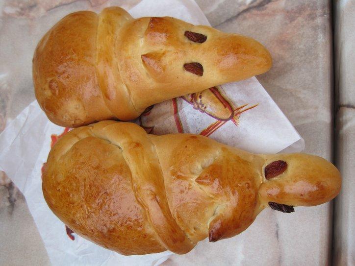 The bakery had sweet buns shaped like mice and like hedgehogs. We bought two mice. It was hard (for me) to know whether to bite my mouse in the head or the bum. Dodie mercilessly just twisted the head off hers.