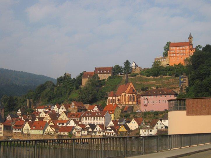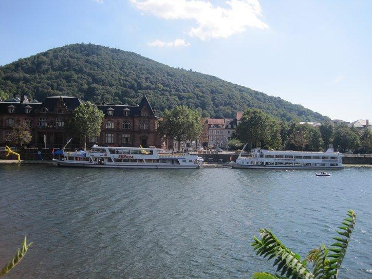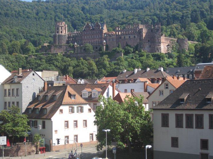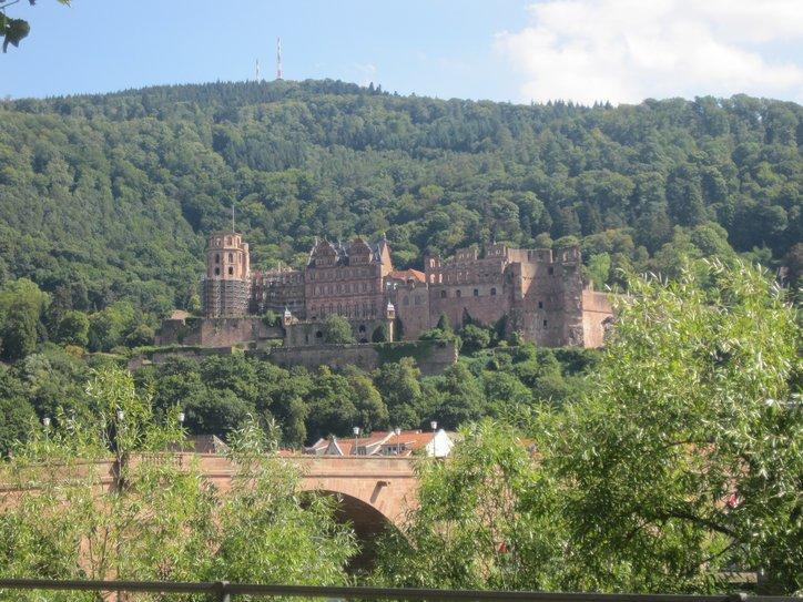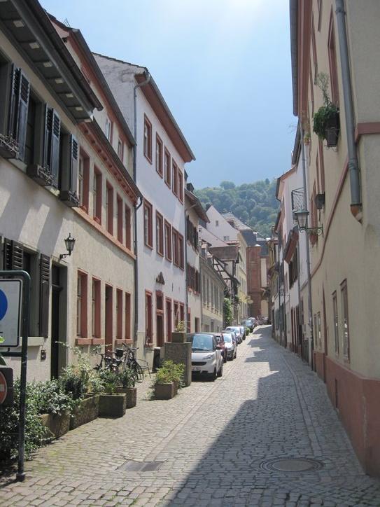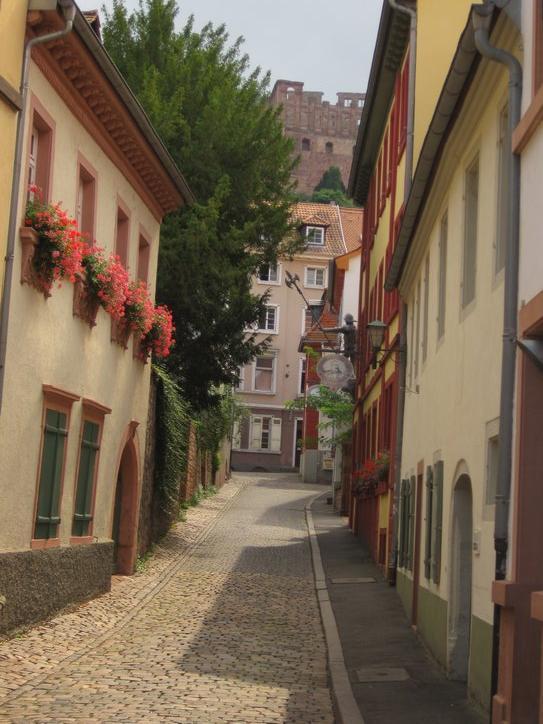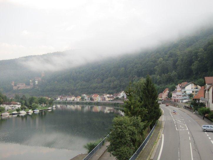 At Neckarsteinach we had a crack at another castle on a hill. We then left any forested paths and began to wend our way on shared roads with cars, heading for Heidelberg. All we really knew about Heidelberg was that it is a university town and that there is a beer named after it. So it was possible that we were heading into heavy traffic and high rises.
