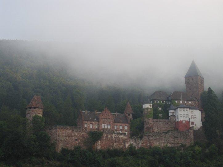 Whenever you look up in Germany you will see some sort of castle on the hill. We looked up and saw one (Wolfs-schlucht) in the mist near Zwingenberg. The heat of yesterday was still in the air, and a heavy haze obscured the hills. Our little camera really could not capture the scene, but as we drew closer, we did get some reasonable shots. We have no real reason for photographing castles on hills, except for the classic “because they are there”. Usually we have no idea about the castle’s history or contents. Still, they add to the mystique of the landscape.
