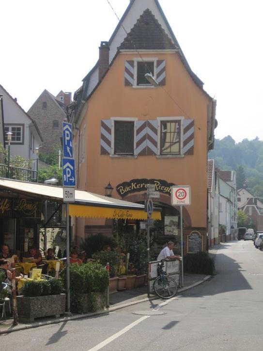 We again got up quite early and left the campsite by 6:30. We cruised into Neckargerach looking for the bakery. When we found it, it was closed, though the sign on the door gave the hours as from 6 a.m. We steeled ourselves to make it to the next town, but became alert as we could smell baking, somewhere nearby. In this way we found the “real” bakery, adding “by nose” to the guidance resources we are using on this trip.