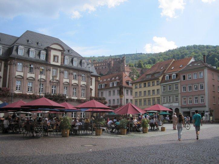 The bridge street and the especially the high street were filled with tourists, to an extent that really was reminiscent of Salzburg. Although every famous town has its share of low quality souvenir shops, Heidelberg had a few more than normal. On this day, anyway, the markt platz contained only such sellers.