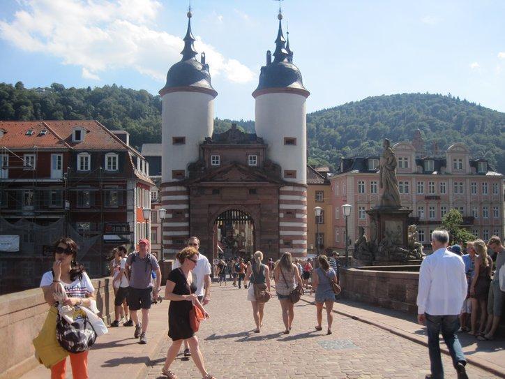 We too, of course, like the old bridge, and the church. We also like half timbered, huddled houses, and church interiors. So have a look at our quick circle tour in Heidelberg. There is the bridge street, the high street, and two churches. You will also see part of the old university, and the old bridge.