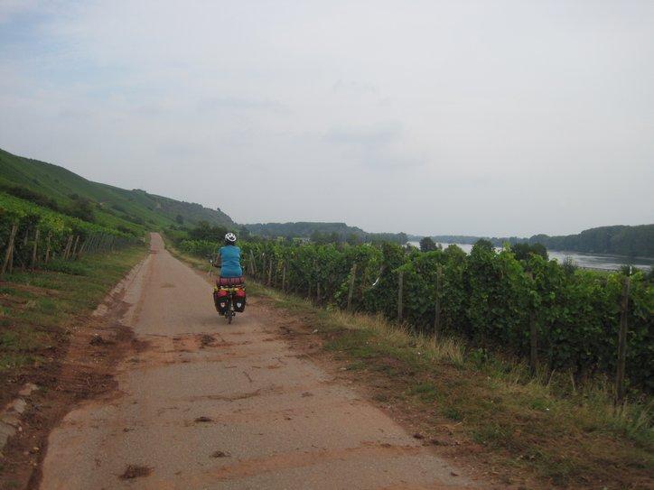Much as we enjoyed meeting Erica, Dodie was saying today that she is tired of always being approached by people with the Usual Questions, and having to always talk, talk, talk. So she had a crack this afternoon at clamming up, and even giving me a (not so subtle) pinch if she thought I was delaying the parade by talking. So that was one issue we were dealing with as we cycled closer to Mainz.