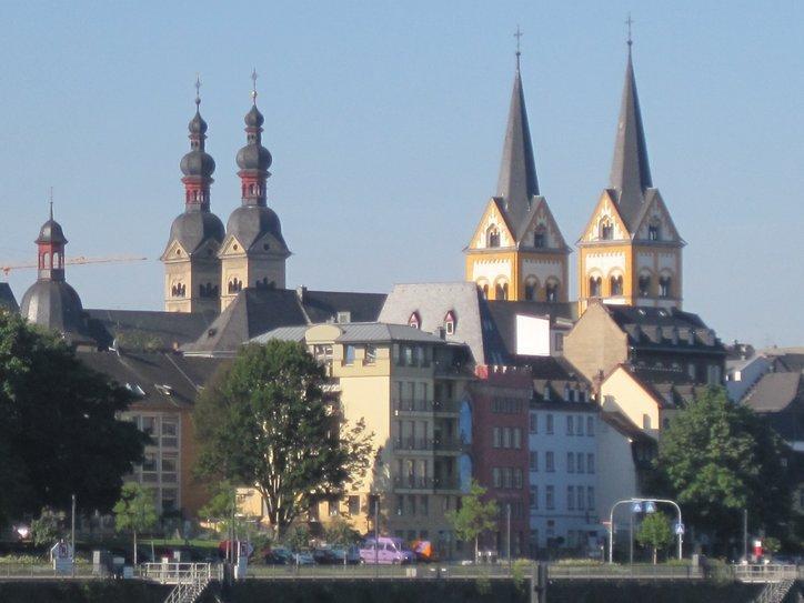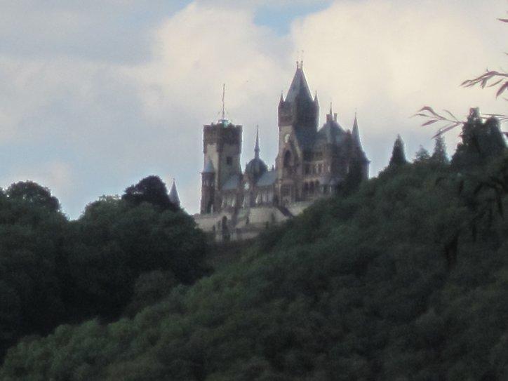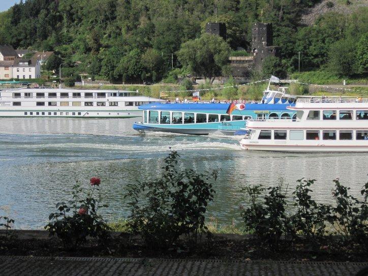 We are torn by wanting to see everything in the places where we are, and wanting to sally off to new places, so we don’t run out of time and miss them. Today we changed our minds about Koblenz and decided to sally off. We took some parting photos from the bank of the Mosel, and headed down the Rhine again.