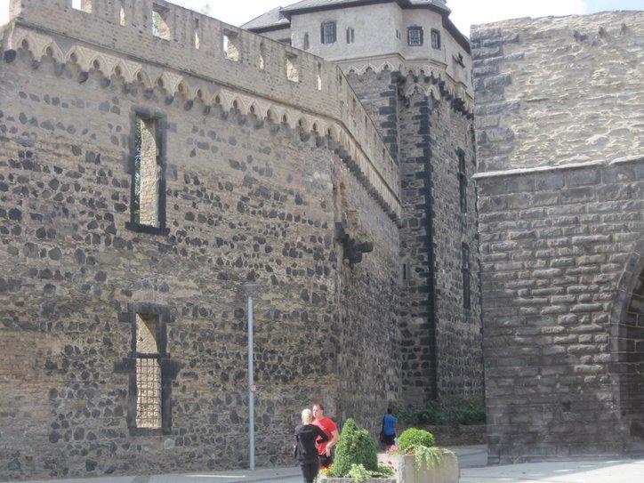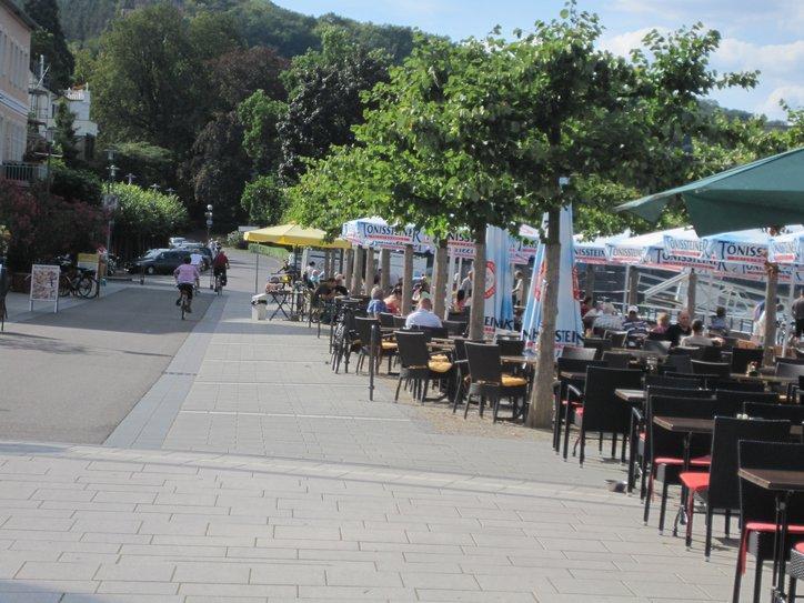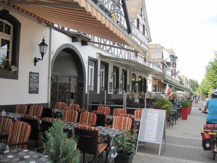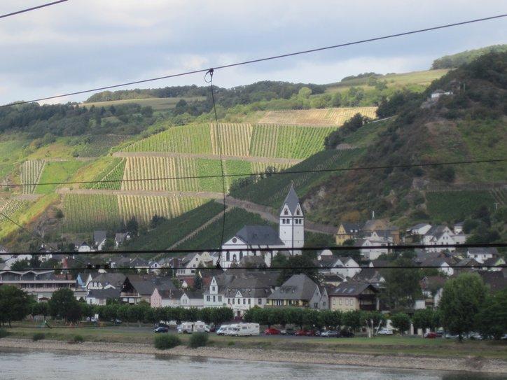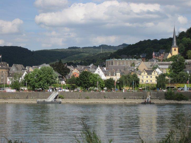 After Andernach the Rhine began to recoup some of its glory, with a few vine covered hills and a good sprinkling of fairy tale castles. Some towns, like Bad Breisig were interesting, with many riverside hotels and restaurants. In general we did not go into the towns, which indicates that (a) we have our heads down and are charging ahead and (b) we do not want to spend the energy necessary to refind the signed path after wandering in a town.