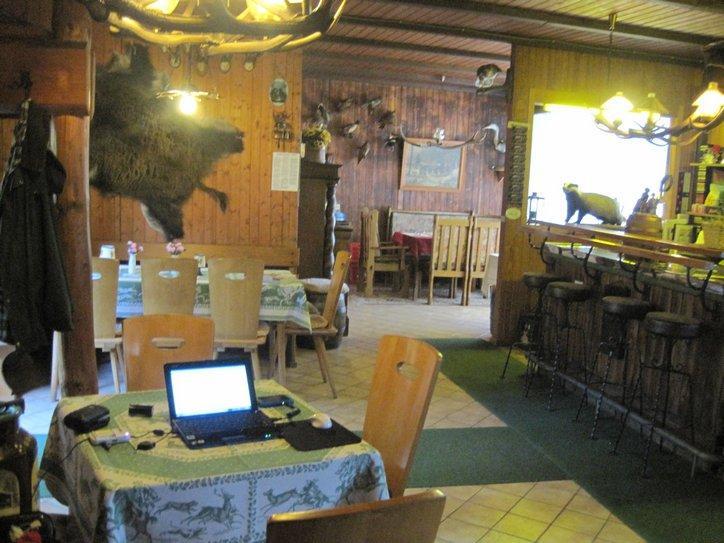 Camping on the way to Bonn seemed particularly slummy to us, with jumbled trailers, little cover, and flimsy facilities. However, the last one (our last hope before the desert of Bonn) , called Campingplatz Genienau, was as nice as they come around here: not too crowded, place for tents near the showers, solid facilities building. Best of all, the lady set me up in the basically unused restaurant part of the registration building, with table and chairs, and light, and power!!