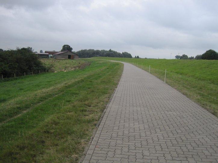 We took a seat in a bus shelter and ate our bread and cheese and turkey breast slices. Looking around, we saw one of those “LF” dutch bike route signs, in this case LF3. We sort of knew where this goes, but no matter, since only one or two other signs for it made an appearance in the next 20 km. What we did not see was any more of the little man on a bike with wheels made of EU stars – the Rhine Bike Route sign we had been following.