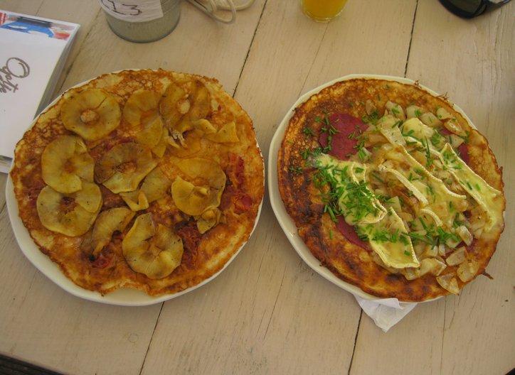 Soon we encountered a sign for a pancake house, or pannenkoekhuis. These are everywhere, and of course Dutch pancakes are famous, especially in the USA. So just for research purposes, in we went. The Dutch pancake, like the French crepe or even the pizza, is a matter of the base and the toppings. I chose apple and bacon and Dodie chose one they called a Stinkerd – onions, salami, camembert, and garlic chives. The toppings were ok, but we both found that the pancake probably had oil in the batter and had been fried with oil on the griddle, making for an altogether too oily product. Now we don’t know if that was isolated to the pancake house we hit, or if it is the general practice. Like with the “curry wurst” we may not be willing to invest another mealtime in finding out. Oh, one other thing, with a coffee and an orange juice the cost was 28 euros, which is about $36 canadian – a pretty pricey lunch by standards of back home!