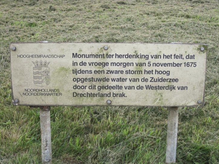 Back out along the Westerdijk, we reached a memorial of a storm that happened in 1675. The water broke the dike and flooded what looked like a huge area on the map at the site.