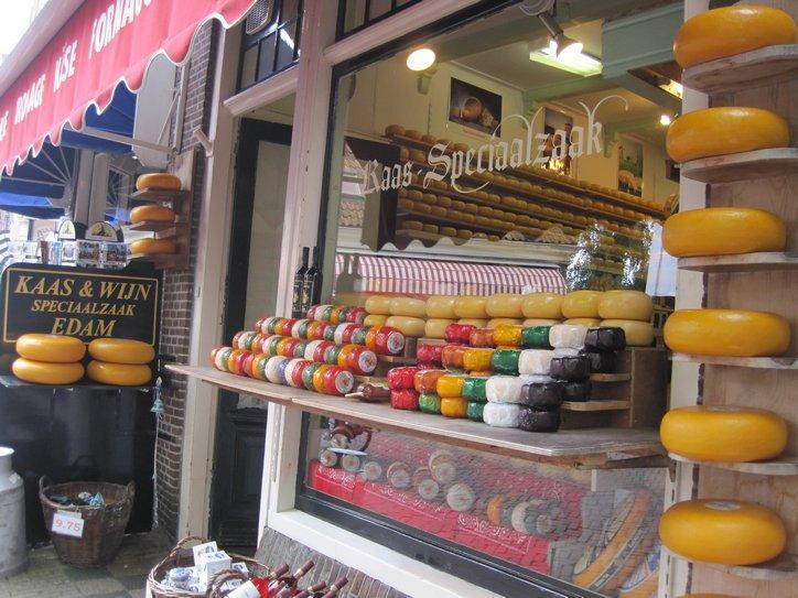 One more intersection down was the Edam cheese market, the main thing that had drawn us down there. I guess I was expecting a big building, like the Atwater market in Montreal, bustling with eager Amsterdam based buyers. What we found were a few wooden tables, since the market was over when we got there, that would have supported just a half dozen vendors. One permanent store on the corner did have a selection of “Edam” cheeses, but like the cute and small town, it was a cute and small presentation. We are sure, though, that we did find the true Edam and the true market, because back at the one souvenir store we could see it all on the postcards for sale.