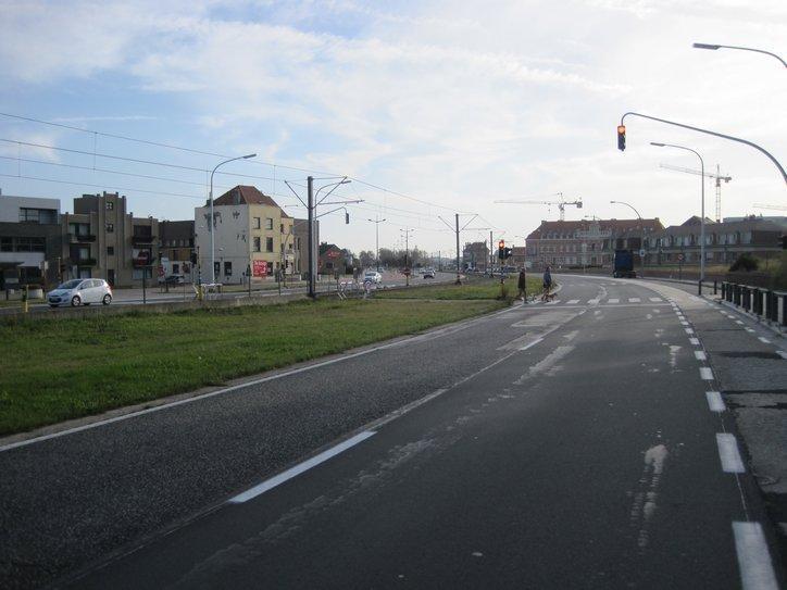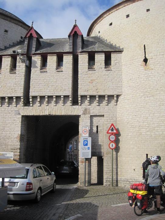We then hopped on a road that would intersect the Brugge ring road. There we crossed the canal and passed through one of the old city gates.