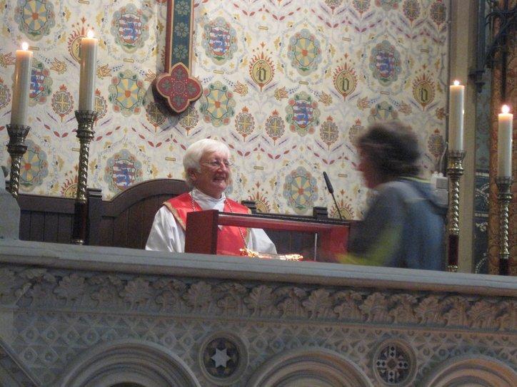 Next door was something we had read about: the Basilica of the Holy Blood. Apparently they have a vial containing some of Christ’s blood. We are not sure of the details of how they got it and how much blood there is, etc., and lack the internet right now to find out. However we were delighted to see from a sign out front that the ceremony of veneration of the blood was about to begin. We entered the Basilica and found truly, the most beautifully decorated religious building that we have seen so far. The entire interior is painted in a most becoming way.