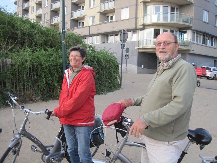 We had only left Brugge around 2, and now cruised along quite smartly to make up time. Still, it was getting late, and we began to look for any signs leading to camping. No luck. Finally, north of Oostende we asked a couple about camping, and they said there was only something perhaps 10 km back and 10 km forward. However they offered to lead us part of the way forward, taking a short cut through Oostende. The couple was Miet and Eddy De Groof, and since they knew the city well were able to lead us on a route we would never have found on our own. Finally they pointed us down a bike path and told us where we would find Camping Zeester, which they recommended.