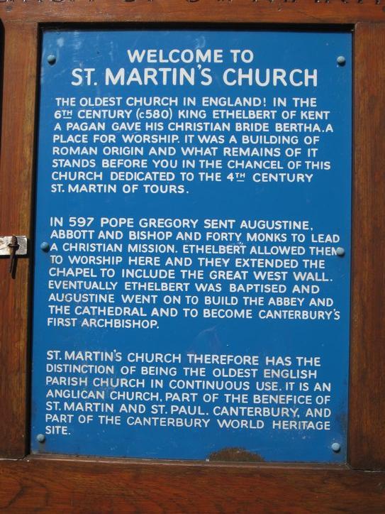 When we entered Canterbury we came first not to the cathedral but to St Martin’s church. St Martin’s is the oldest church in continuous use in the English speaking world. This church was already old when Augustine came to Canterbury in 597 a.d. In 580 it was set up as a church in a former Roman building, for the Christian wife of the king of Kent.