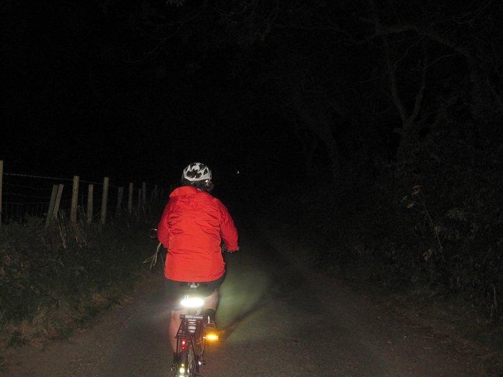 We left Canterbury after 4:30, but made good time since we remembered most of the tricks with the signage. Still, night fell before we were back to Dover. We used our powerful bike lights and carried on. One light ran out of power, but we were not too worried, because we still could use our headlights if necessary. On the other hand, here we were making our way along pitch black little lanes (so pleasant in the day), with failing lights and a history of not finding all the signs, even in broad daylight.