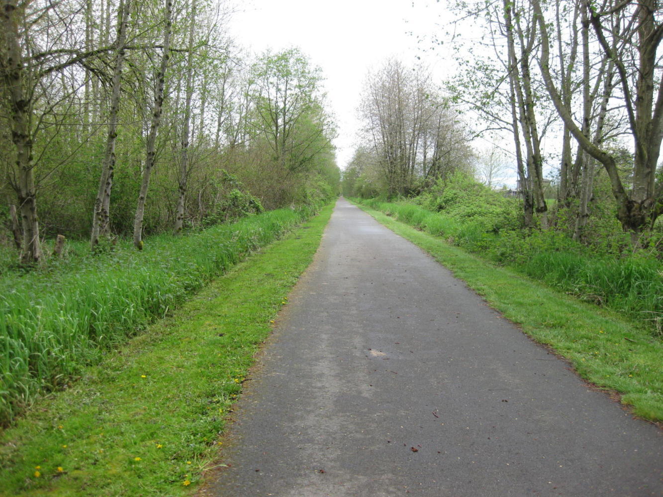 Outside the restaurant we asked directions to Highway 410, which would lead us to Puyallup, the next major stop on our revised (and revised and revised) itinerary. The helpful young couple we approached easily pointed us the right way, but made two other suggestions for better ways to get there. We went with one of these, a bike trail that they said was paved all the way, though by a circuitous way that could add a moderate amount to the total distance. At this stage we were willing to add distance to be rid of the noise of traffic.