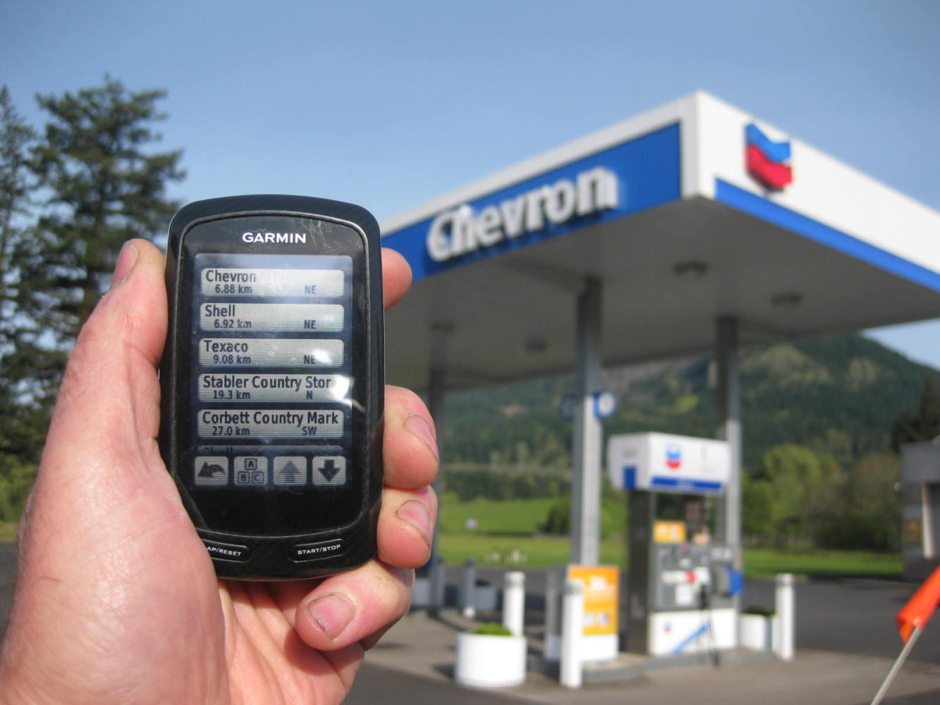 The GPS says the nearest Chevron is 7km away, across the river, in Oregon!