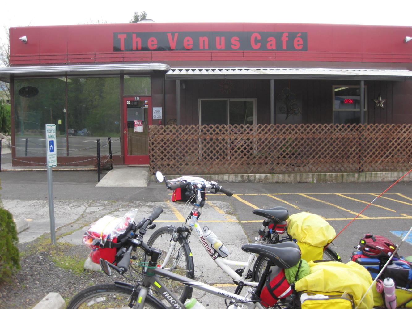 Now at Stevensen, we are at the Venus Cafe. The Venus Cafe is not lovely as its name implies. But I could order fried potatoes (comes with eggs and toast as an afterthought, and I got a side of bacon). That's lovely by our standards.