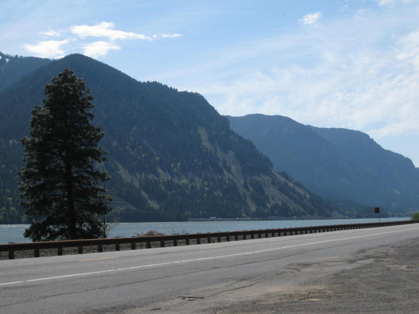 The hill we were so helpfully kicked down by the ranger turned out to be 2 km long and took us 45 minutes to trudge back up this morning. However at Bonneville the road transformed itself into the one we had hoped for - with a wide shoulder and gentle grades, by the river.