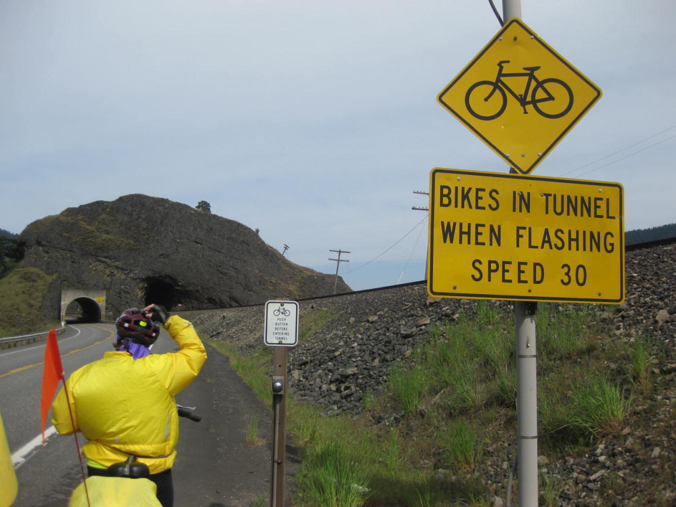 Tunnels of doom. There are five of them. The second is long enough that having forgotten to take off my sun glasses I was almost completely blind. A pickup followed us through with its flashers going, though. We also had our helmet flashers on.