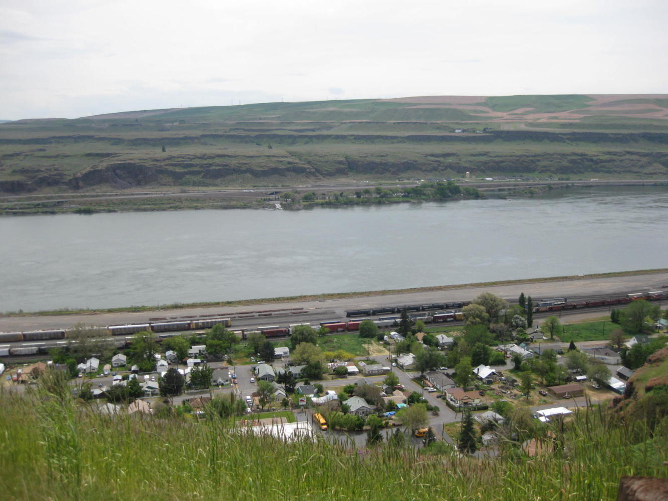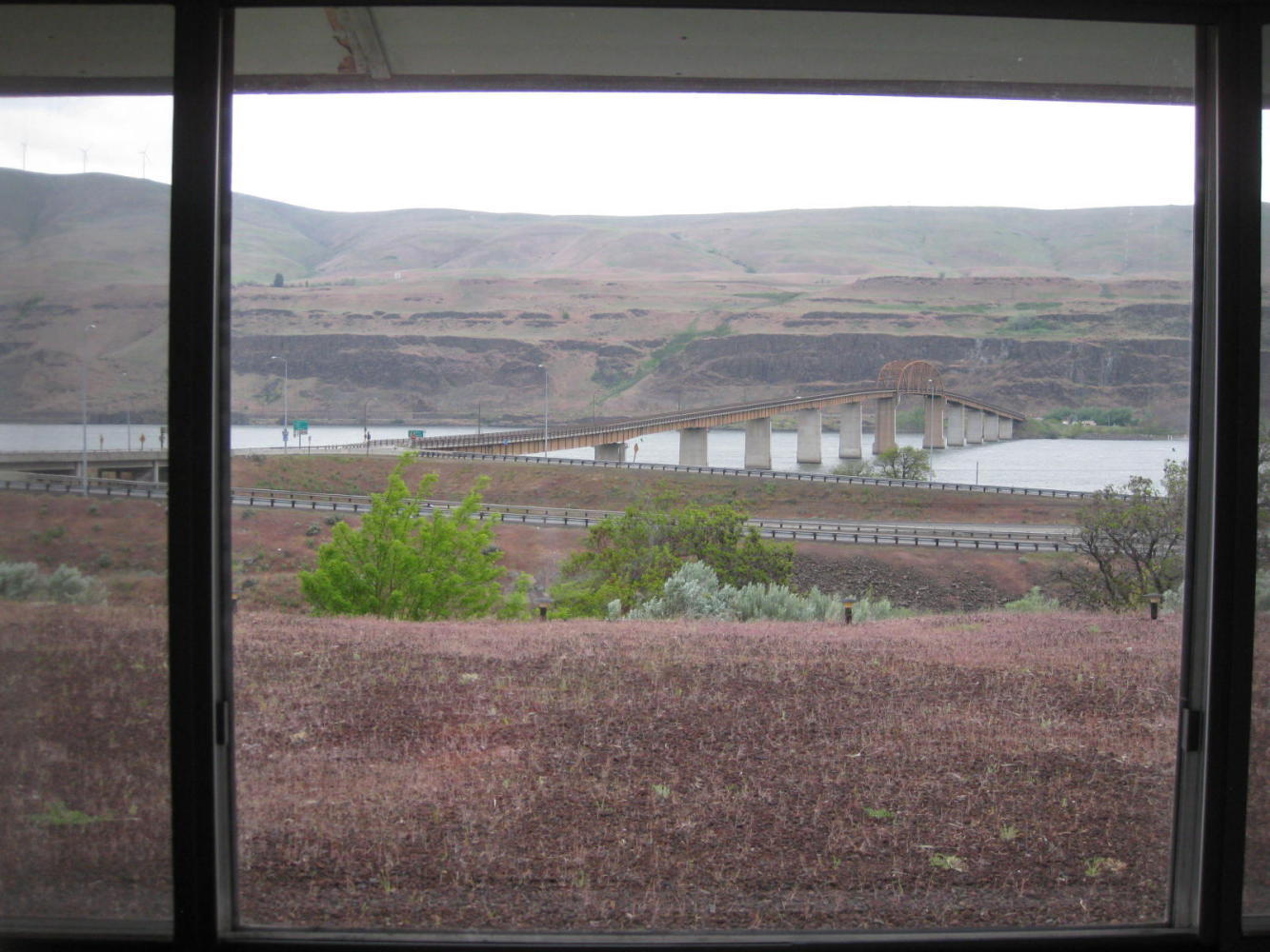 The GPS talked about a school and train station in Wishram, but it was strangely silent about any Starbucks (or anything like that.) We found out why, as our road soared high above the town, and we could look down on each building, none of which had any R&R about them.