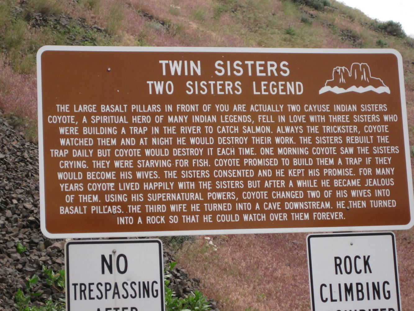 The Wallula Gap is a narrowing in the Columbia valley. Floods from Glacial Lake Missoula flowed through here and carved the steep sides. It also left behind features like "the sisters"