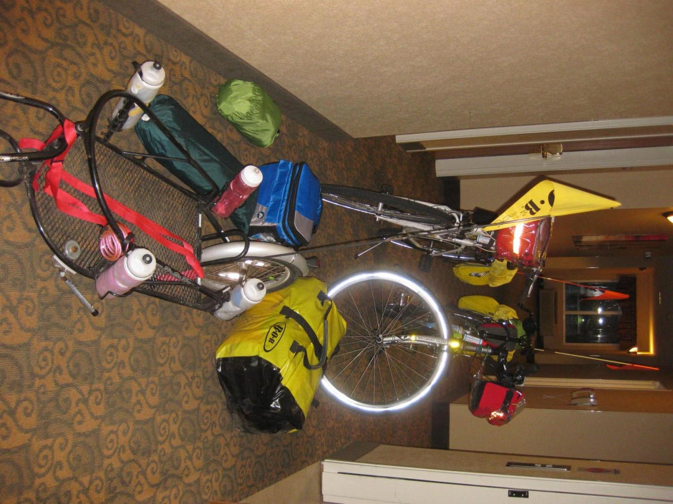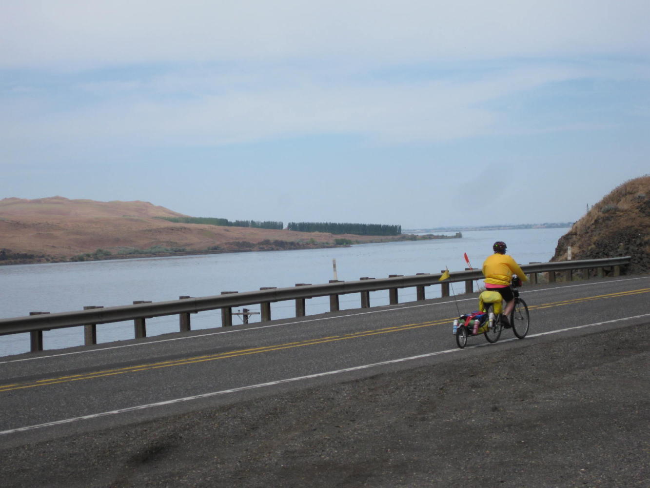 The decision to press on to Walla Walla was a risky gamble. Any major hills or bad weather would have left us stranded on the highway in the dark. At this early stage in the trip, 100 km (with headwind, not tailwind) really is a bit much. Dodie ran out of fuel quite quickly. There comes a point in the day when throwing in carbs does not cause any increase in your energy, and even an apple did not do much to speed Dodie down the road. She did carry on, though, but slowly. Highway 12 in this area has no exits, and no place to pop a tent, so there is no option but to continue. The sun was almost down when we got to Walla Walla. Dodie had made it, but only just.
