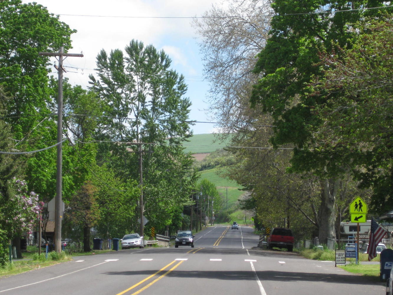 The road flew us all the way into Waitsburg. We discovered that it is a "real" town, with houses on shaded streets. Best of all, there is a small but real "historic downtown". On the street that makes up downtown, everyone stopped to talk to us. That comprises all two people that were there! One was a young man who spontaneously told us the main events of his whole day.