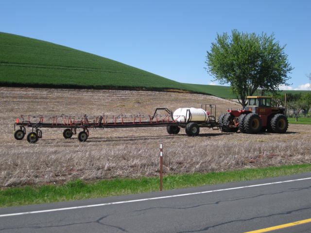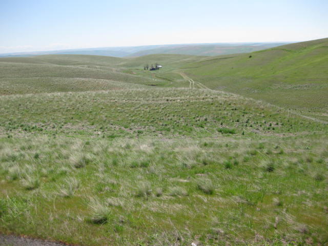 we headed out of Central Ferry with three liters of water. 30 km down the road was "Dusty" where there might or might not be some supplies (Google Web, for instance, had never heard of the place). Anyway, another 30 km would then bring us to Colfax. Despite the cloudless sky and temperatures in the 30's, this should have been ok.