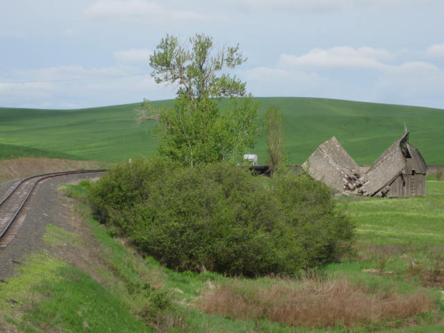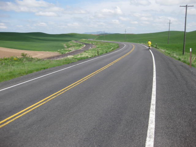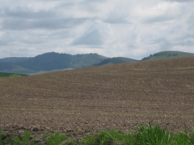 Hwy 27 out of Garfield lived up to all advance billing, as did Warner Road and the Tekoa- Farmingham Road. In this area the Palouse hills are coming to an end, flattening out, and the land is preparing for the next regime - the mountains leading to Lookout Pass. The cycling here is supreme! Lovely scenery, no scary hills, almost no cars, and the few trucks that showed up stopped and edged past us. Yes, it's true - stopped and edged!