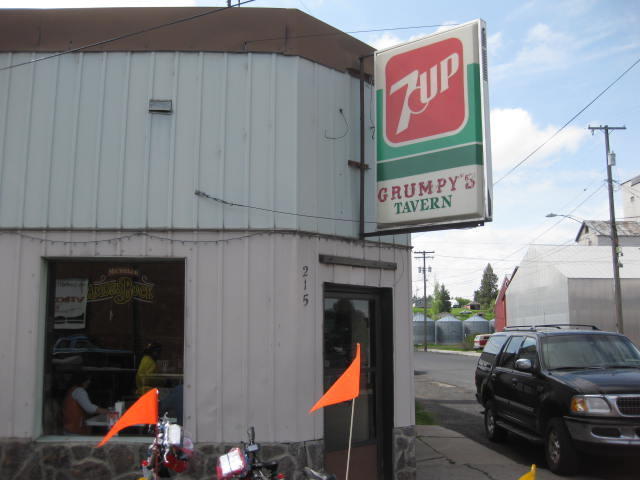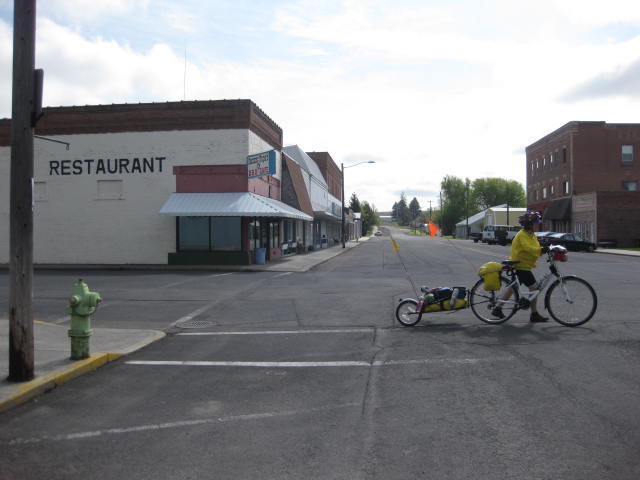 Mike Echanove pulled up to say goodbye as we made one last link to the Net in front of the Green Frog. We rolled out in the direction of Garfield, following Bill Bonte's instructions (which is also the basic route suggested by Lawrence Hammond) . We figured on breakfast in Garfield, but quickly found that the one cafe was a goner. In fact on first inspection we had doubts that even the post office was in operation. It was, and inside we got the tip that the pub might be able to whip up some coffee and even an egg.