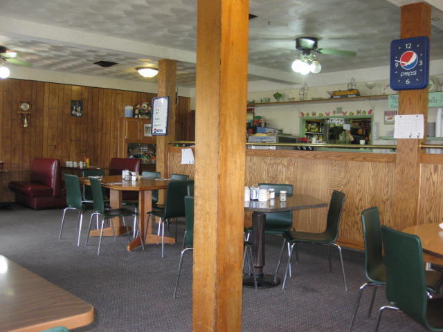Inside the pub were two fellows who were perhaps farmers, but we wondered why then they were in the pub at 9am. Still, they told us lots about the town, and the businesses that used to be there. They seemed resigned to, as they said, the thing "drying up and blowing away". See Art's comments on dying towns in the guestbook today.