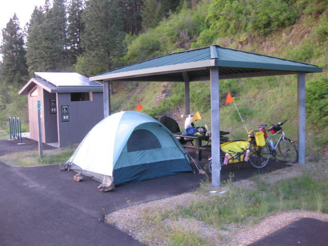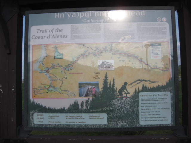 By this time we had figured out that we had missed finding Heyburn State Park, where we had intended to stay. We decided to ask the GPS about it, and to our surprise it said the equivalent of 'you are heading along the trail of the Coeur d'Alene, and you missed your turn for the park 4 km back. Head back there and I will show you the turn' Say what? You are routing us on and off a trail? Great! Only thing, we would never turn back!