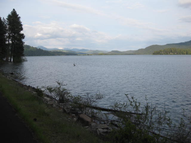 From there it was an easy ride along the lakeshore, until we ran into Harley and Nancy Johannsen. Nancy had a flat that we could help out with. She also has a place in Mullan, where we have been invited to stay.