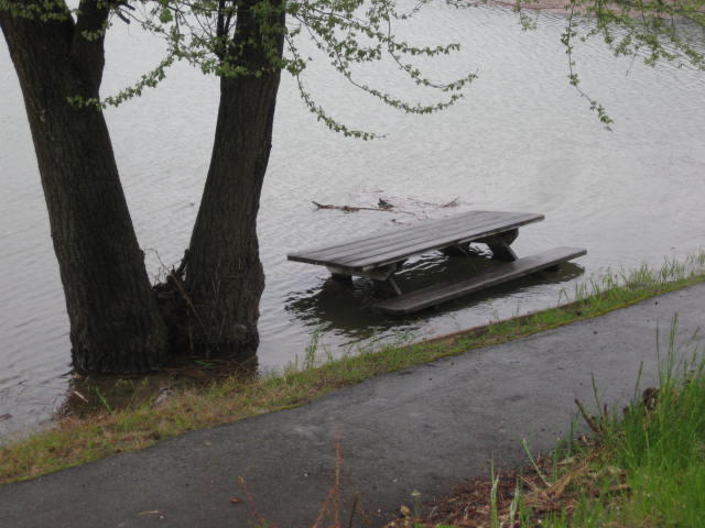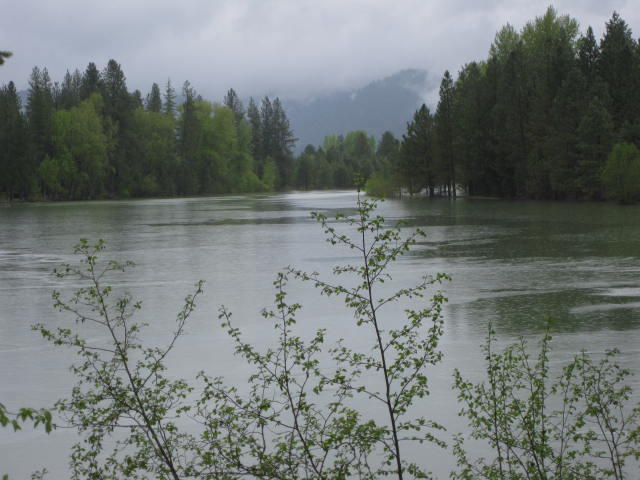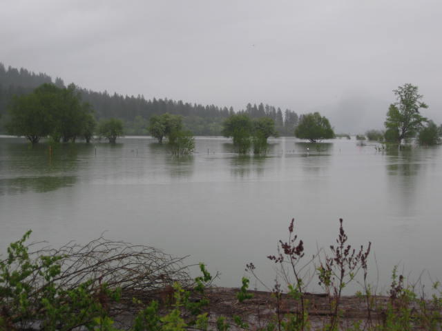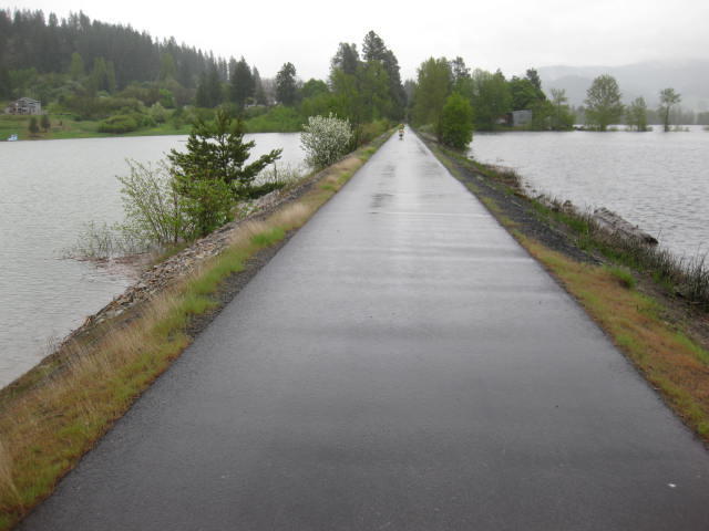 The trail follows the Coeur d'Alene river, which is on one side, and passes by up to nine small lakes on the other. However, high water has made the whole scene a water world. This, of course, was enhanced by the all day rain that was also part of the package.