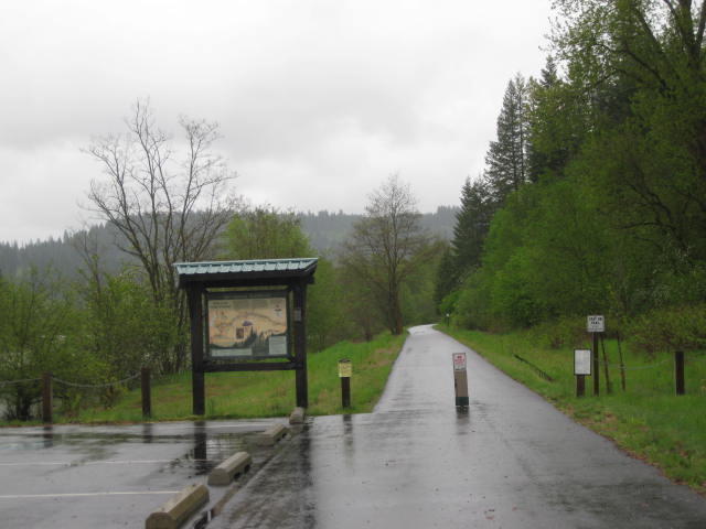 Rain or not, this trail is so gorgeous that already our day was made. Looking ahead on the map to the sections that pass by communities well known to us: Cataldo, Smelterville, Kellogg, Wallace, and Mullan, we could hardly believe how great this was.