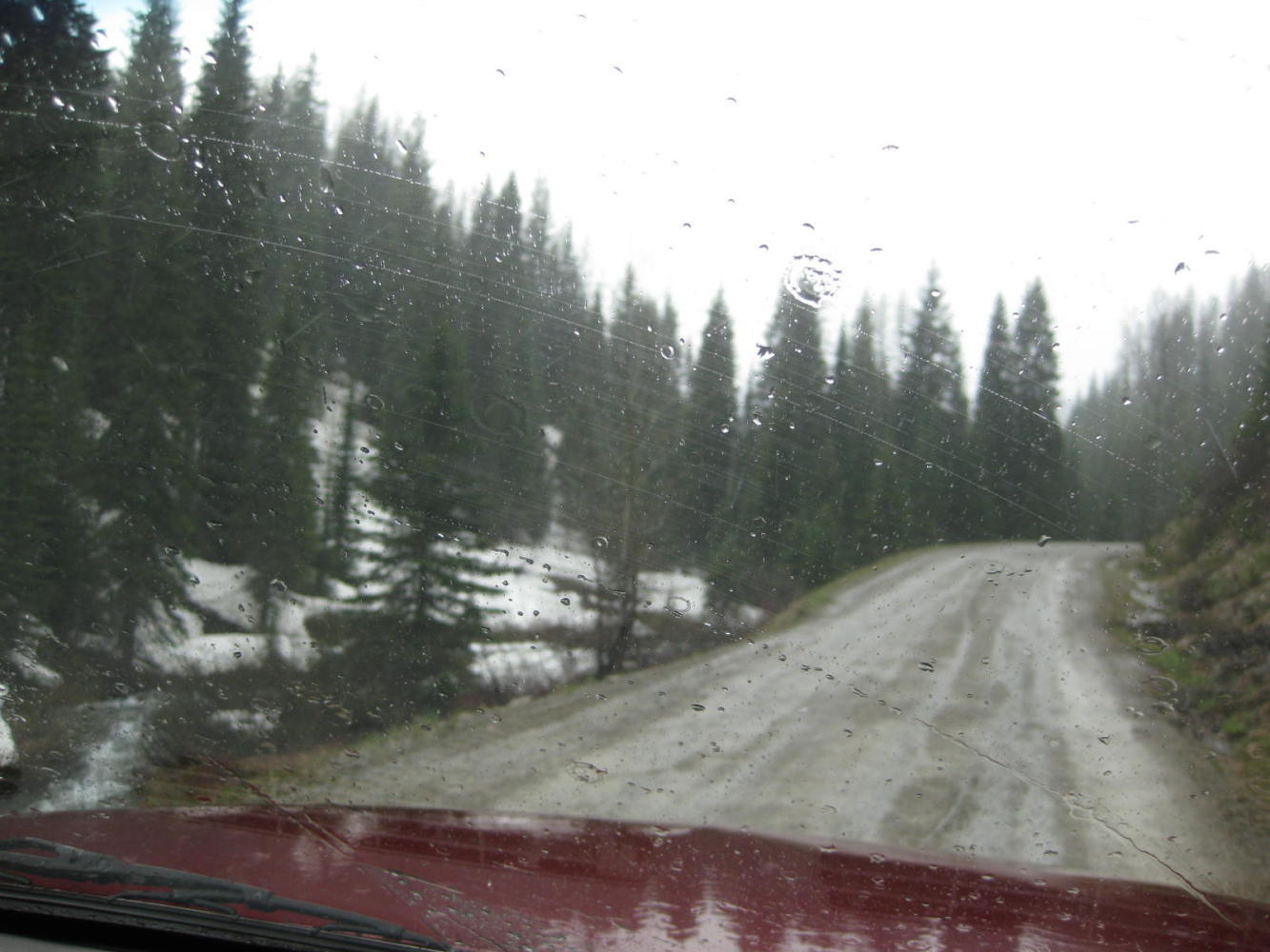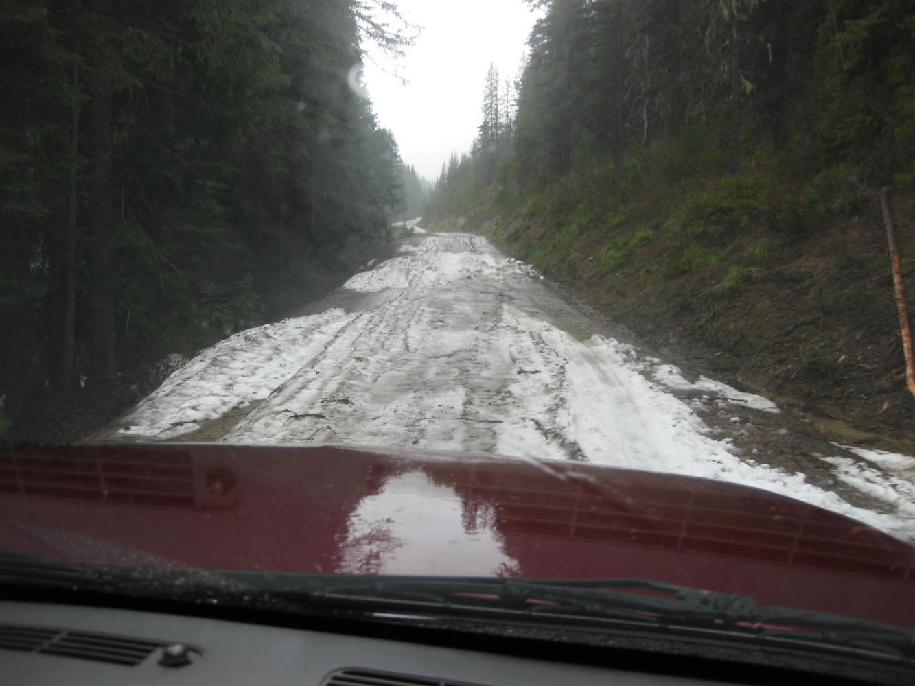 The shoulder of I-90 in the near vicinity of the Pass, on the East side, was heavily broken up and gravelly. This plus the rain, heavy at times, did not make a pretty sight.