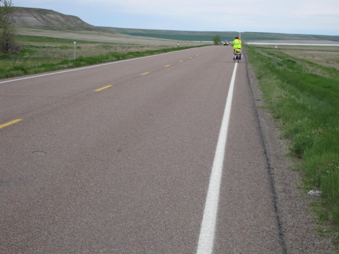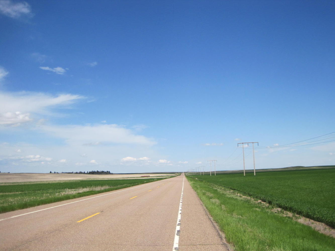 Also. for the first 15 km the road (Hwy 87 - the Havre Road) was infested with garbage trucks from Great Falls. It also featured a shoulder of 16 inches, max. So here our new easy cycling world in reality was scary and tiring as could be, despite the reasonably easy slopes.