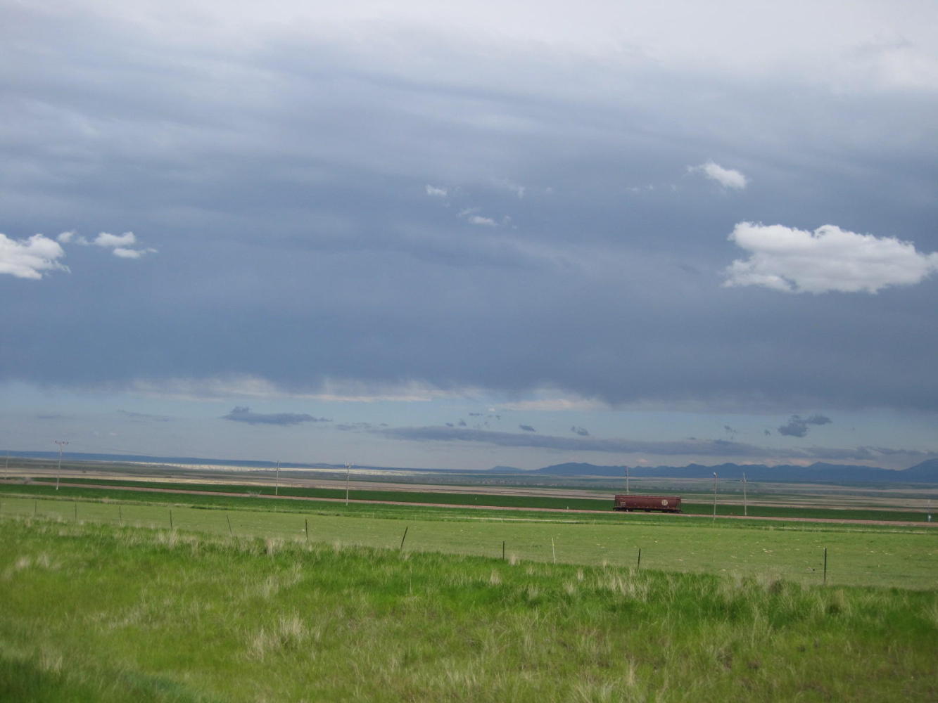 Or at least, we beat those storms and found shelter, just in time. We rolled in to Fort Benton at 7:30 p.m. and went to one of the two motels, the Fort. Ten minutes after checking in the skies opened and now, two hours later, it is still pouring.