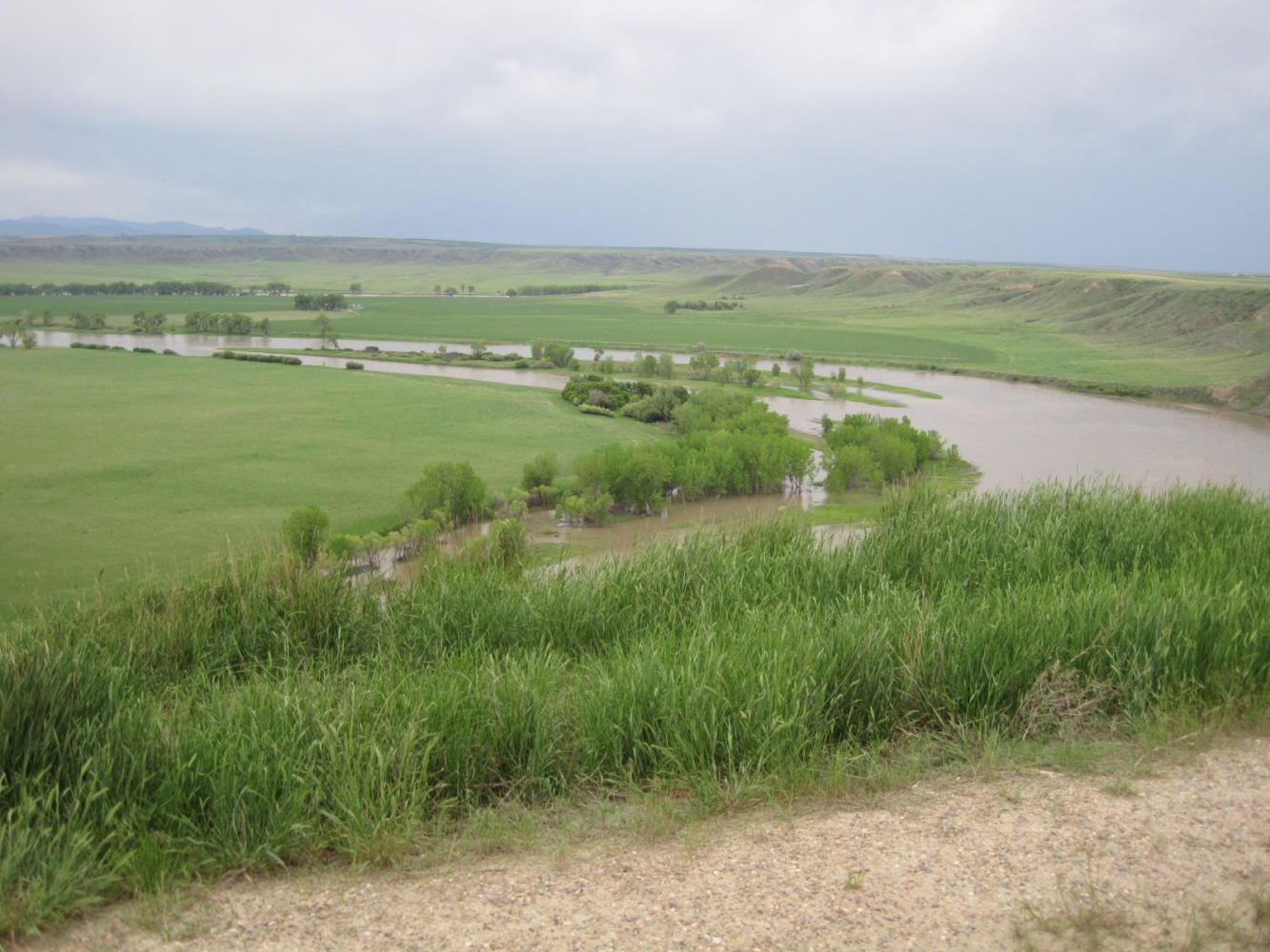 We climbed up the escarpment and away from Great Falls with some misgivings about not having visited the city itself. The fairgrounds border the box store area, which itself is within an extensive light industrial zone. Still being sick, we lacked the get up and go to check out downtown, or the interesting riverside trails and parks.