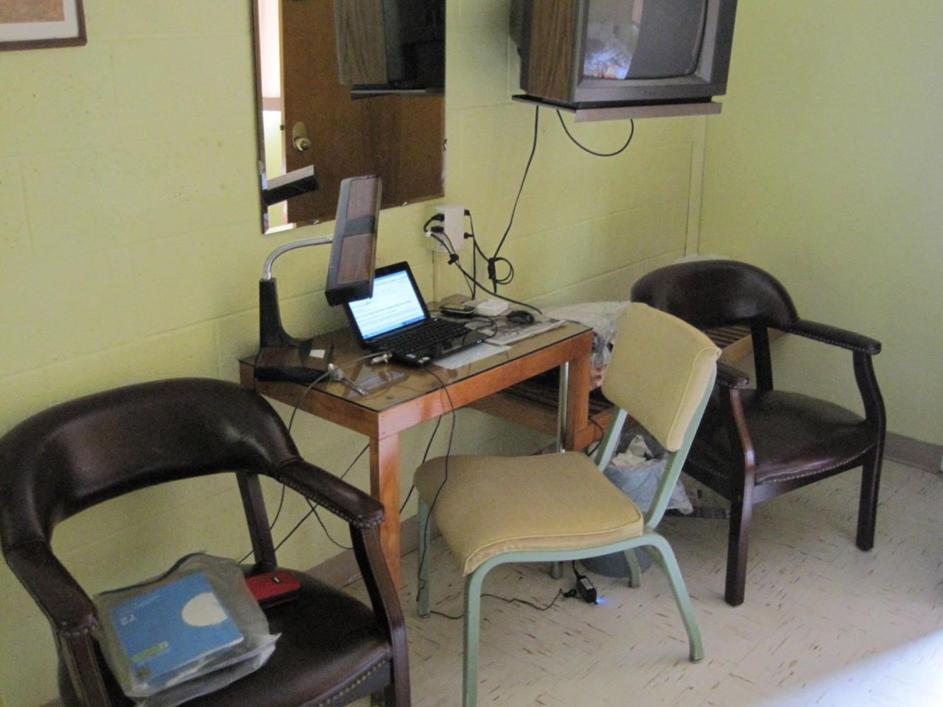 All the other motels we have "washed up" in on this tour were havens of dry and warm where we revelled in the luxuries of a real bed, no rain, National Geographic Channel, the breakfast buffet, and oh my, it's all so great. However, though dry and warm (if you figure out the heater), the Fort Motel has just made us depressed. We would have thought ourselves (who think an actual shelter over a picnic table is WOW) immune to minor decor issues and a little stale cigarette smell, but apparently we are not.