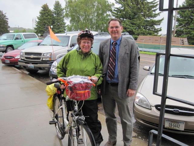 Dick had told us Steve lived in Fort Benton, and left us with his phone number, but last night we just barely made it to town and did not track him down. Steve found us, welcomed us to town and tentatively invited us to dinner with his family. Later, he seemingly just as easily nabbed us on the street and confirmed the time. Of course in our fluorescent get ups and bikes we are not exactly camouflaged, but this feat would sure be hard to replicate in Victoria!