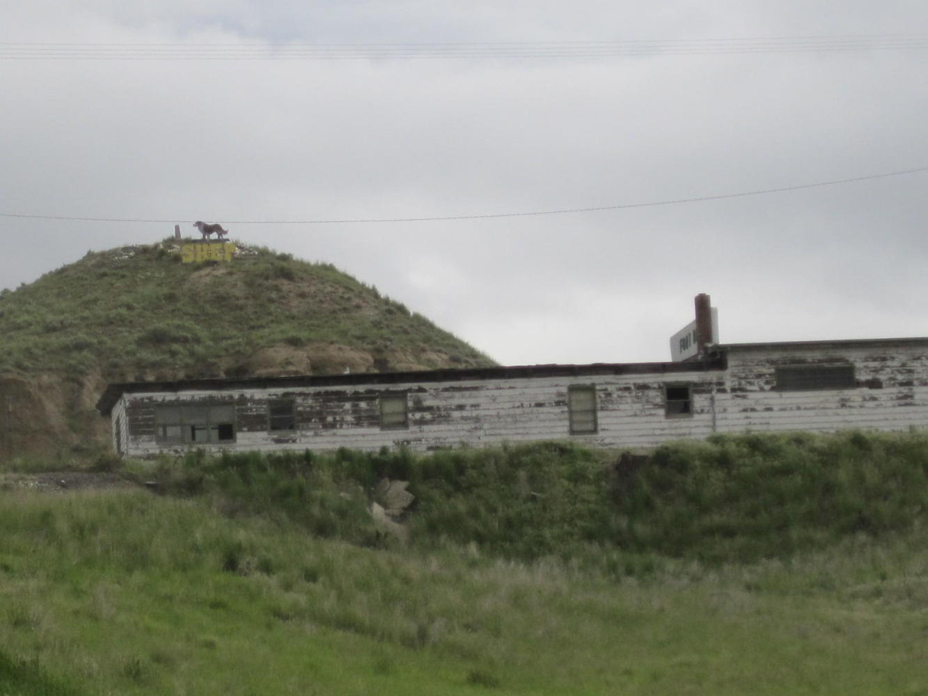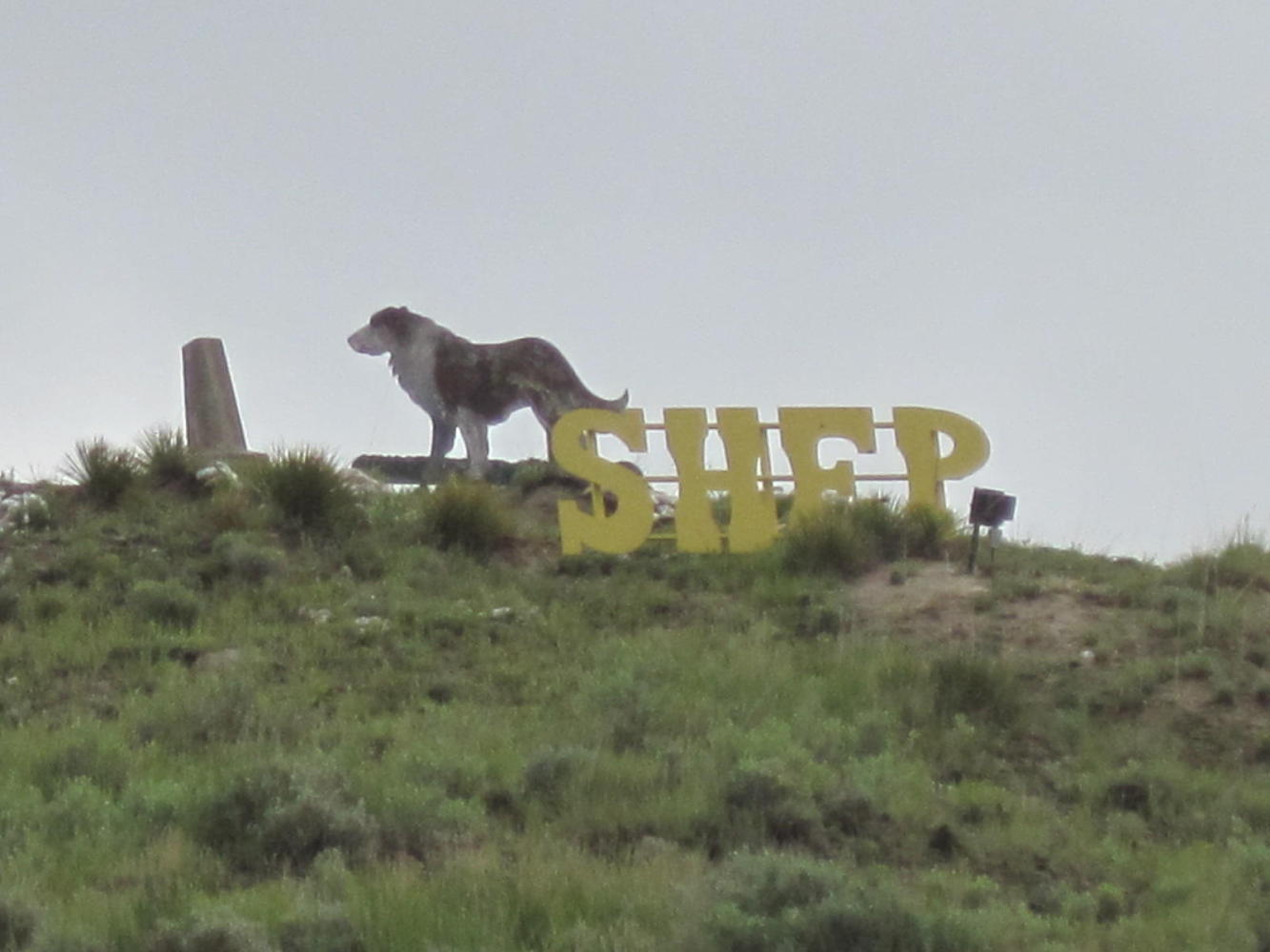 Above the station is Shep's Grave. Shep is a local phenomenon. The story goes that in 1936 the body of a shepherd was shipped out on the train. A collie type dog attended, and then met every train for many years, presumably checking for his master's return. The story was popularized and lives on strongly to this day. There is a Shep statue by the levee in town, a Shep child's story book, and Shep's grave on a hill over the station.